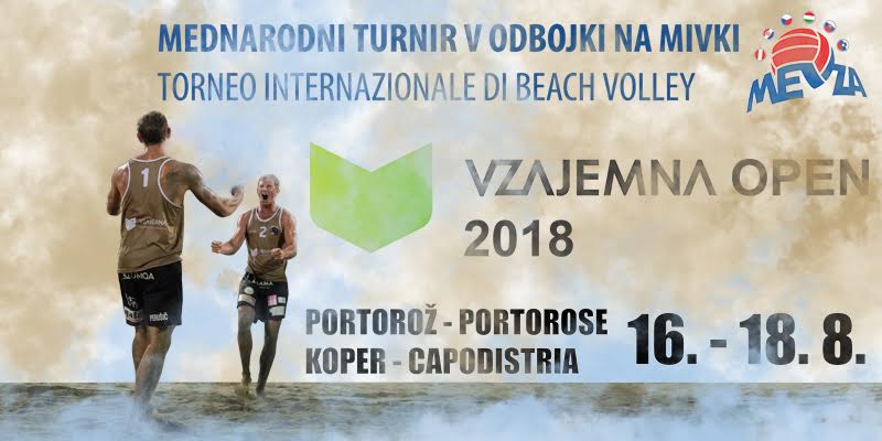Karavana odbojke na mivki, se bo med 16.8.2018 in 18.8.2018 ponovno ustavila v Portorožu. Mednarodni turnir Vzajemna Open 2018, pod okriljem MEVZE in OZS bo potekal na igriščih Centralne plaže Portorož in na igriščih Marine Portorož. V letošnjem letu pričakujemo rekordno udeležbo ekip. V moški konkurenci se jih bo pomerilo v glavnem žrebu kar 32, v ženski konkurenci pa 29. To pomeni veliko število tekem in veliko športnih užitkov za gledalce in odbojkarske navdušence.