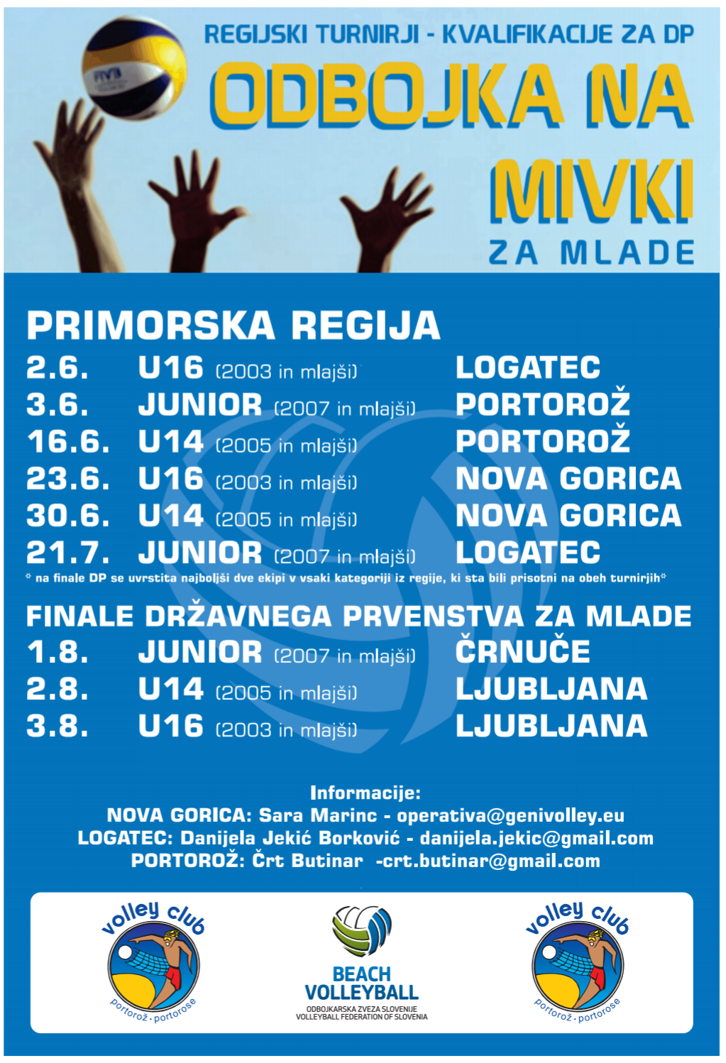 Koledar 2018Objavljeno Ponedeljek, 28 Maj 2018 14:58 Objavljen je bil koledar turnirjev v odbojki na mivki.